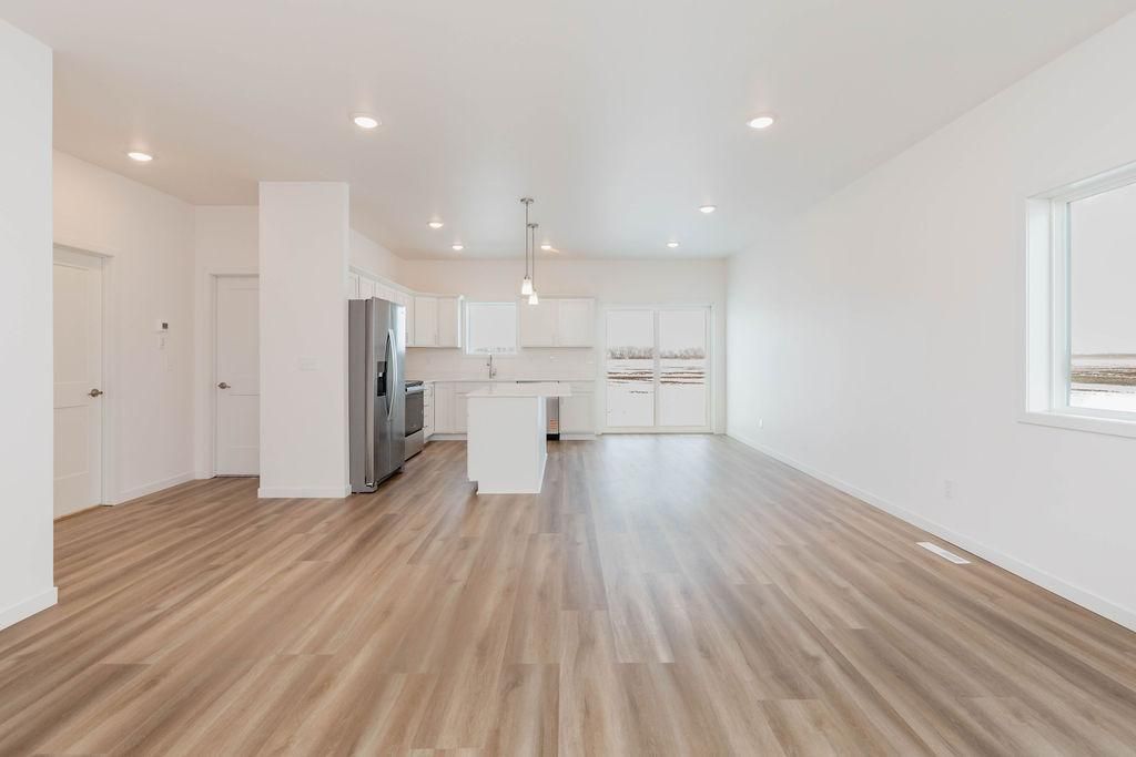 Brand-new 4 bedroom, 2 bathroom bi-level offering modern design, quality construction, and an efficient layout. The upper level features an open-concept living area with large windows, a bright kitchen with quartz countertops, center island, and access to the future deck or patio. Two spacious bedrooms and a full bath complete the main level.The finished lower level includes a large family room, two additional bedrooms, a second full bathroom, and laundry. Home includes energy-efficient materials, LVP flooring, modern fixtures, and an attached 2-stall garage. Located in a growing development close to parks, schools, and amenities. New construction?move-in ready.